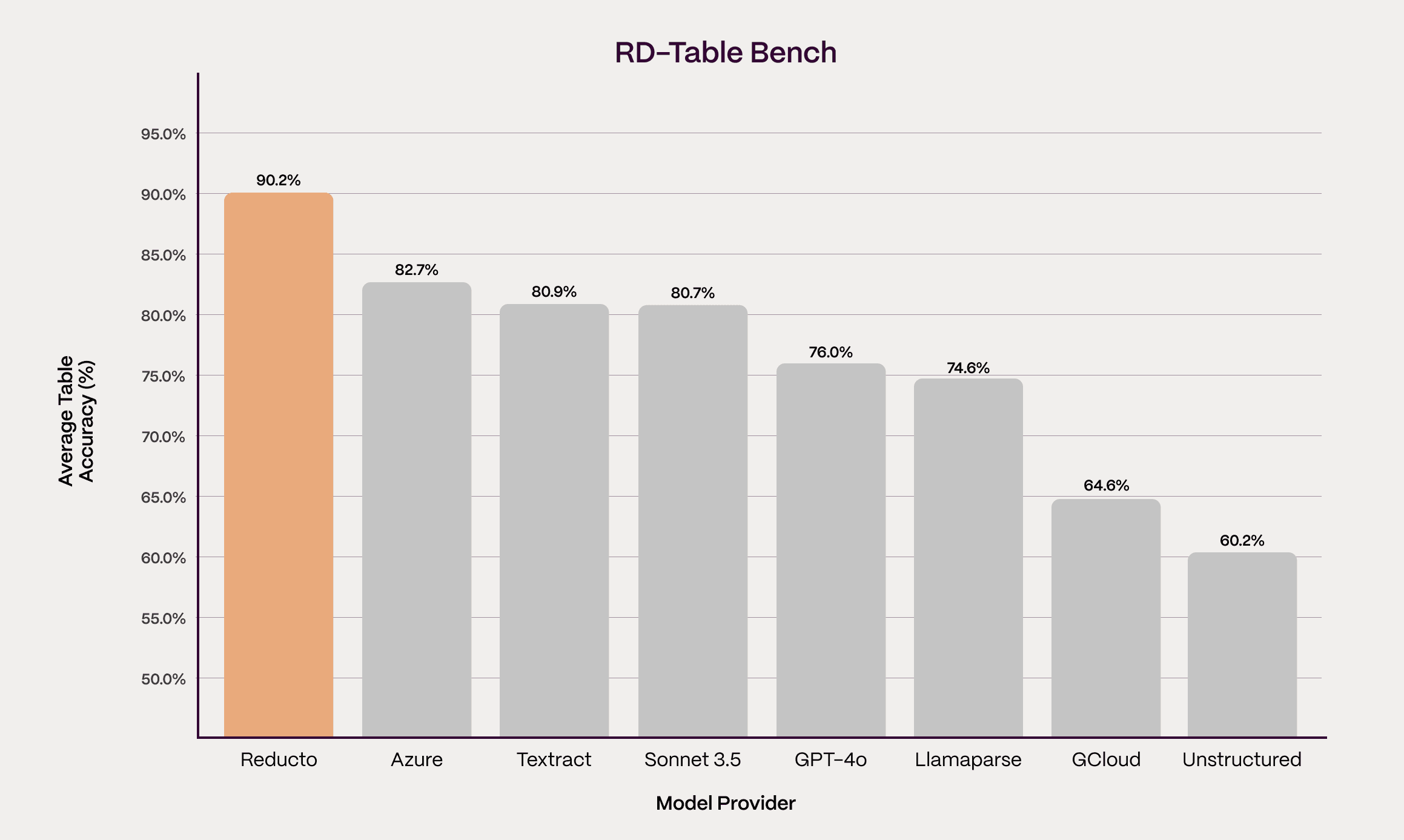 Reducto's models offer state of the art accuracy, with an average table similarity score of 90.2%.
